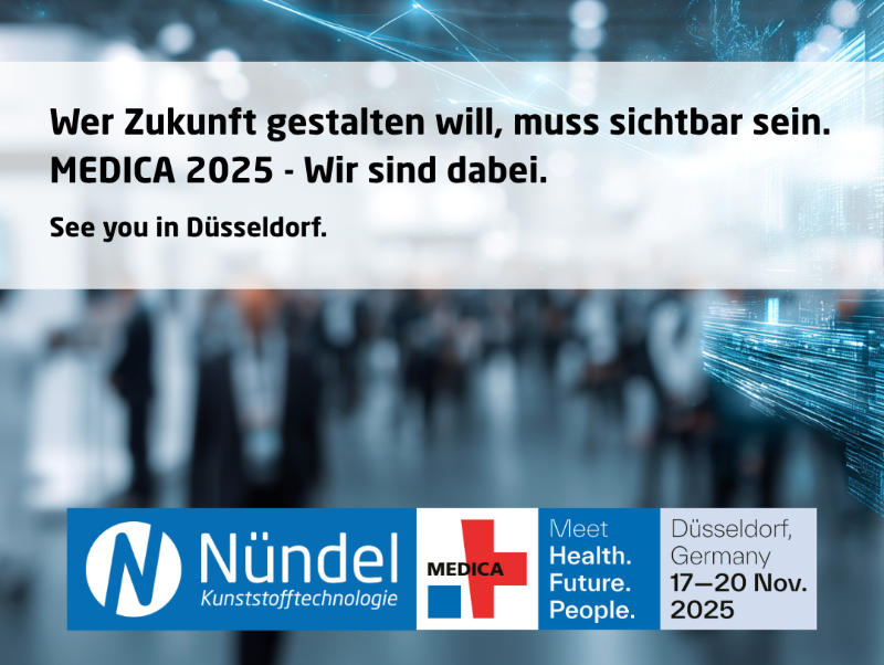Nündel Kunststofftechnologie präsentiert sich 2025 auf der MEDICA mit neuen Impulsen für die Zukunft der Pharma-, Biotech- und MedTech-Industrie.